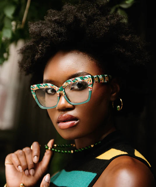 Discover the whimsical elegance of "Banana In Heels" frames, designed by Kendra Dandy. These bold, oversized frames feature playful banana motifs with high-fashion flair for a unique, eye-catching design. Perfect for making a statement, they exude confidence and charm. Whether strutting through the city or enjoying a casual day out, add fun and elegance to any outfit with the vibrant and stylish "Banana In Heels" eyewear.