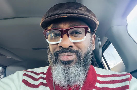 Command the room with this exclusive rectangle retro square frame build. Fashioned from a multi-faceted temple lens, with designs that vibrate above a crème and earth tone color base.