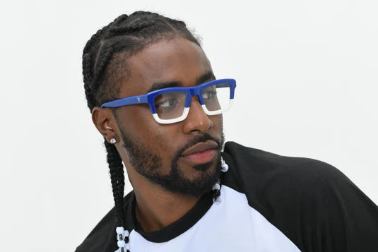 Explore the power of the Crescent frames that speak of transition, of endings and beginnings with its dual color frames in royal blue and white.