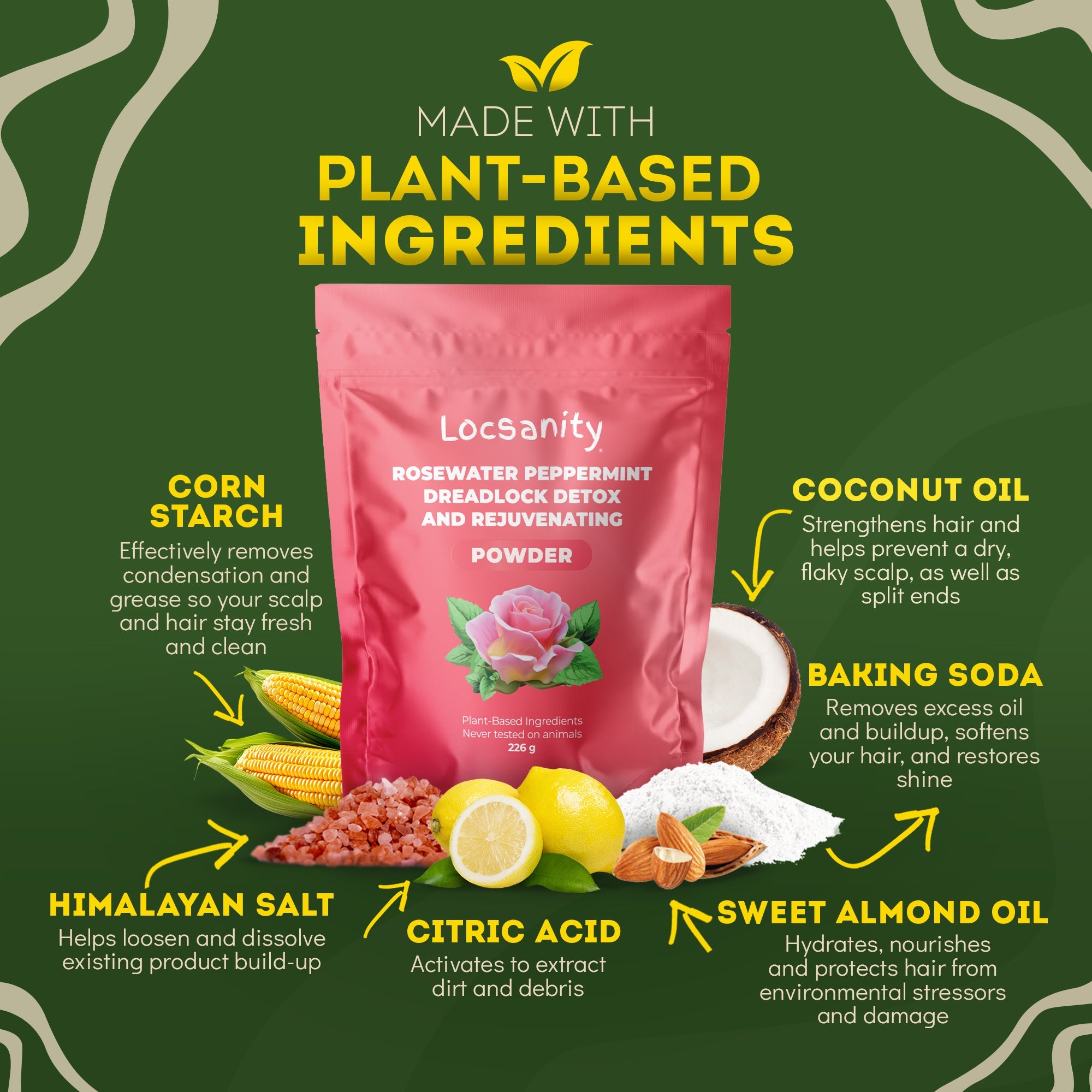 High-Quality, Plant-Based Ingredients - Our detoxifying dreadlock powder is made of baking soda, citric acid, Himalayan salt, coconut and almond oils, and a blend of essential oils. No parabens, mineral oil, or phthalates – just honest, natural hair care for your locs.
