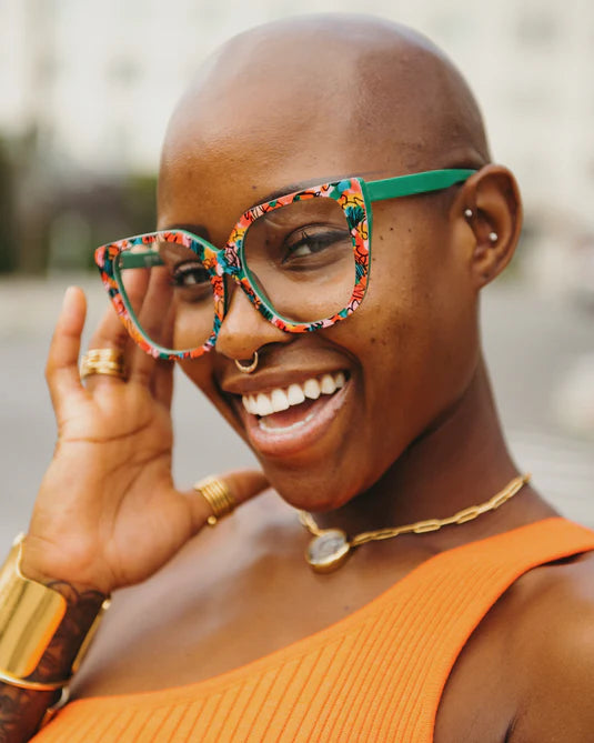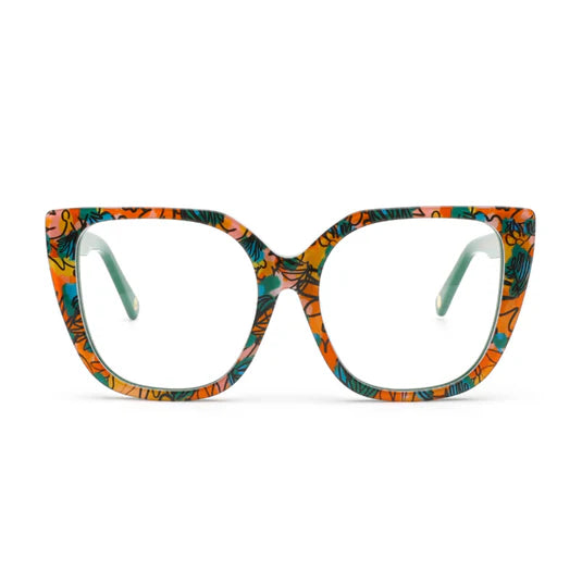 Unleash your wild side with the "Flower Power Cheetah" oversized frames by Kendra Dandy! These frames blend fierce cheetah print with vibrant floral motifs for a bold, captivating, and playful look. Strut through life with the charm, confidence, and sass of a cheetah in full bloom. Embrace the daring combination of patterns and colors and let your unique style shine with "Flower Power Cheetah."