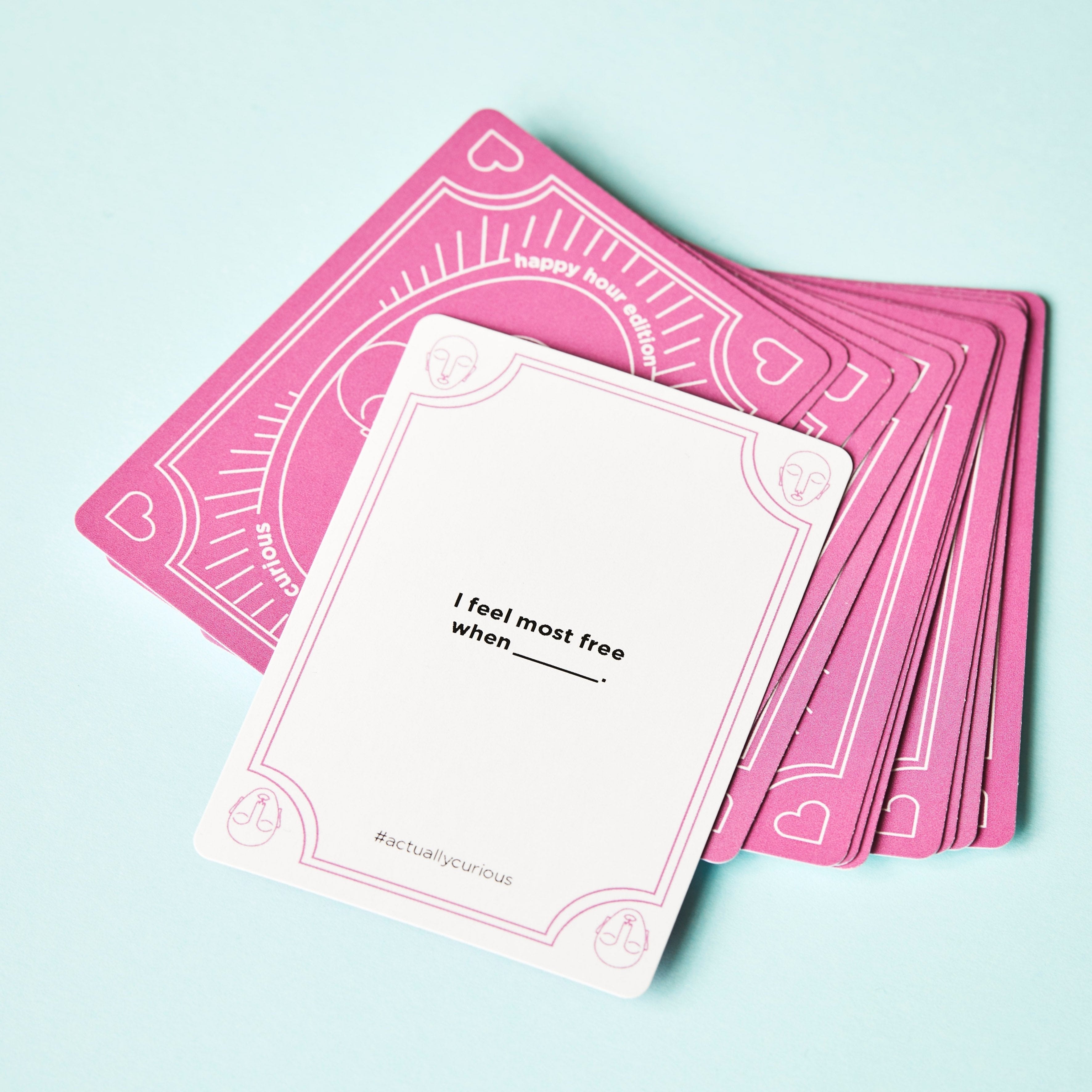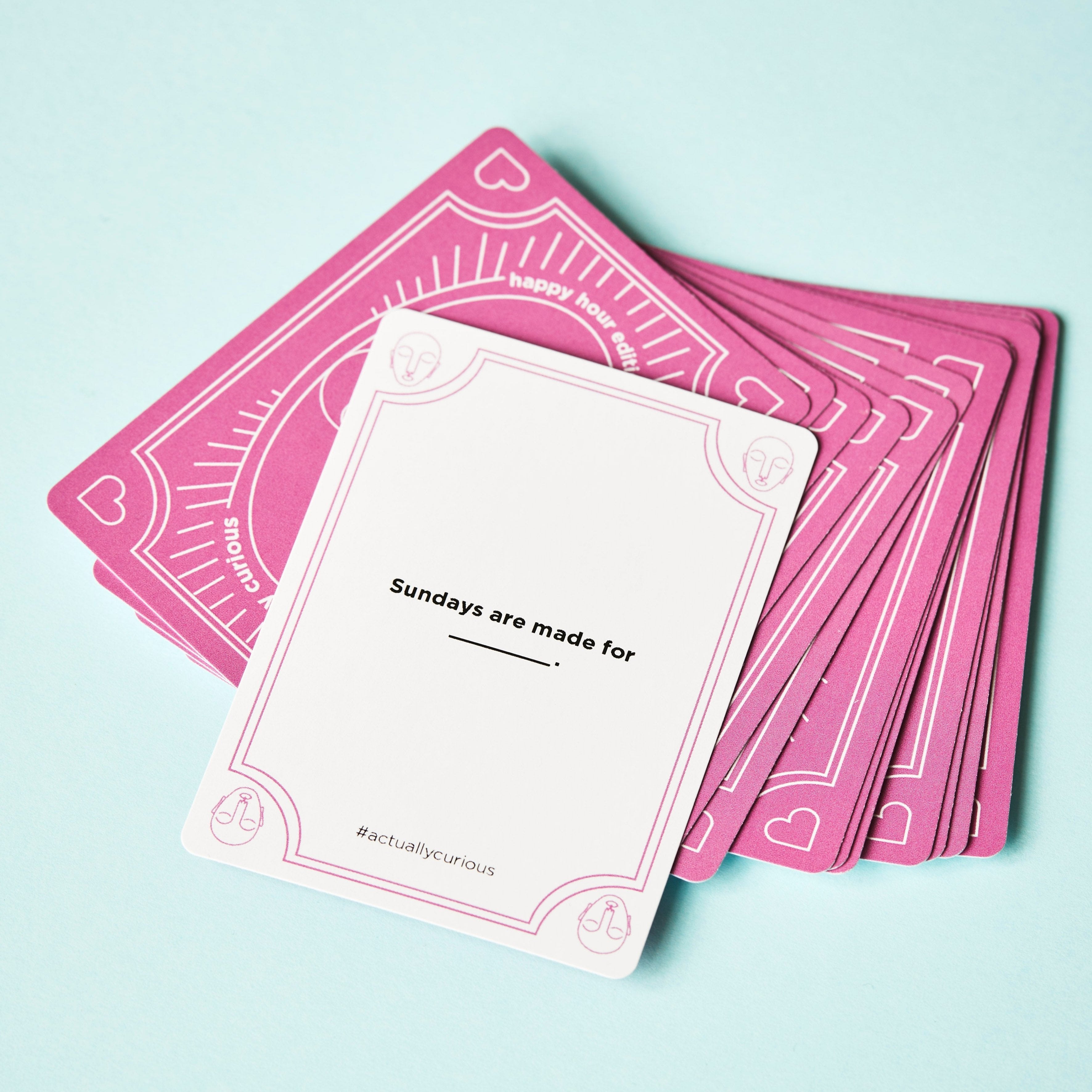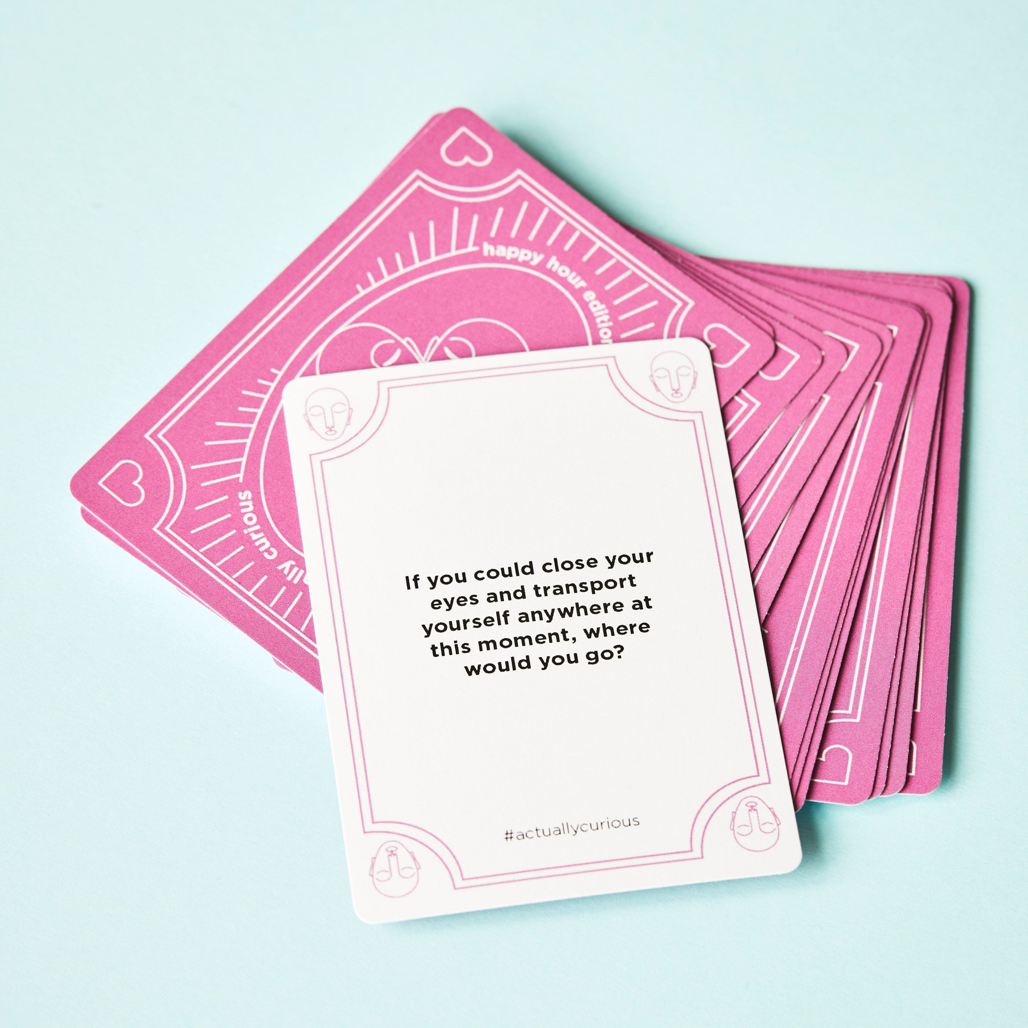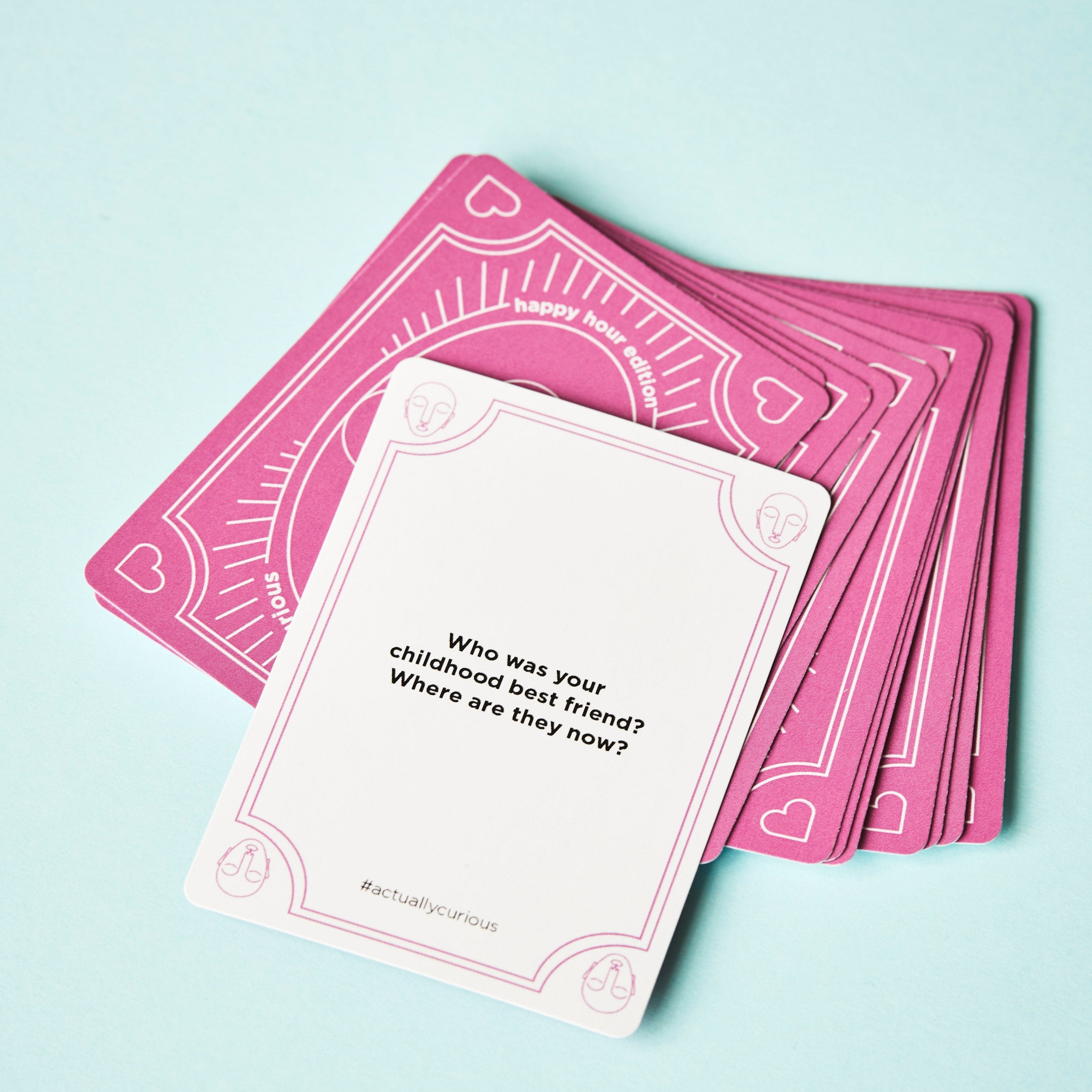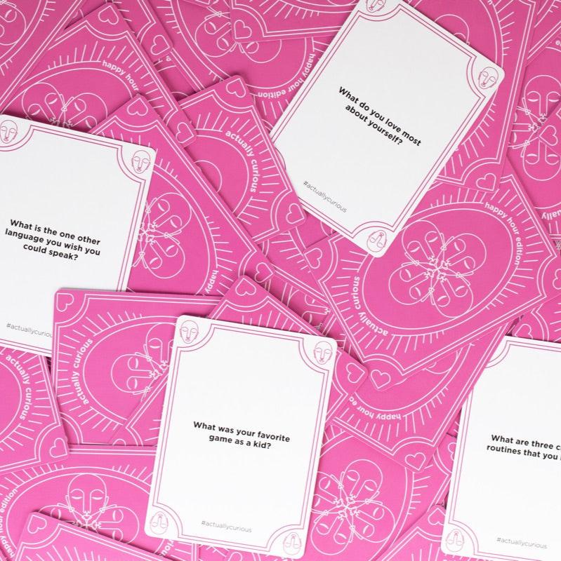 Time to amplify happiness! Our second deck of questions, the Actually Curious Happy Hour Edition, is a fun icebreaker game that celebrates the things that make us happy.