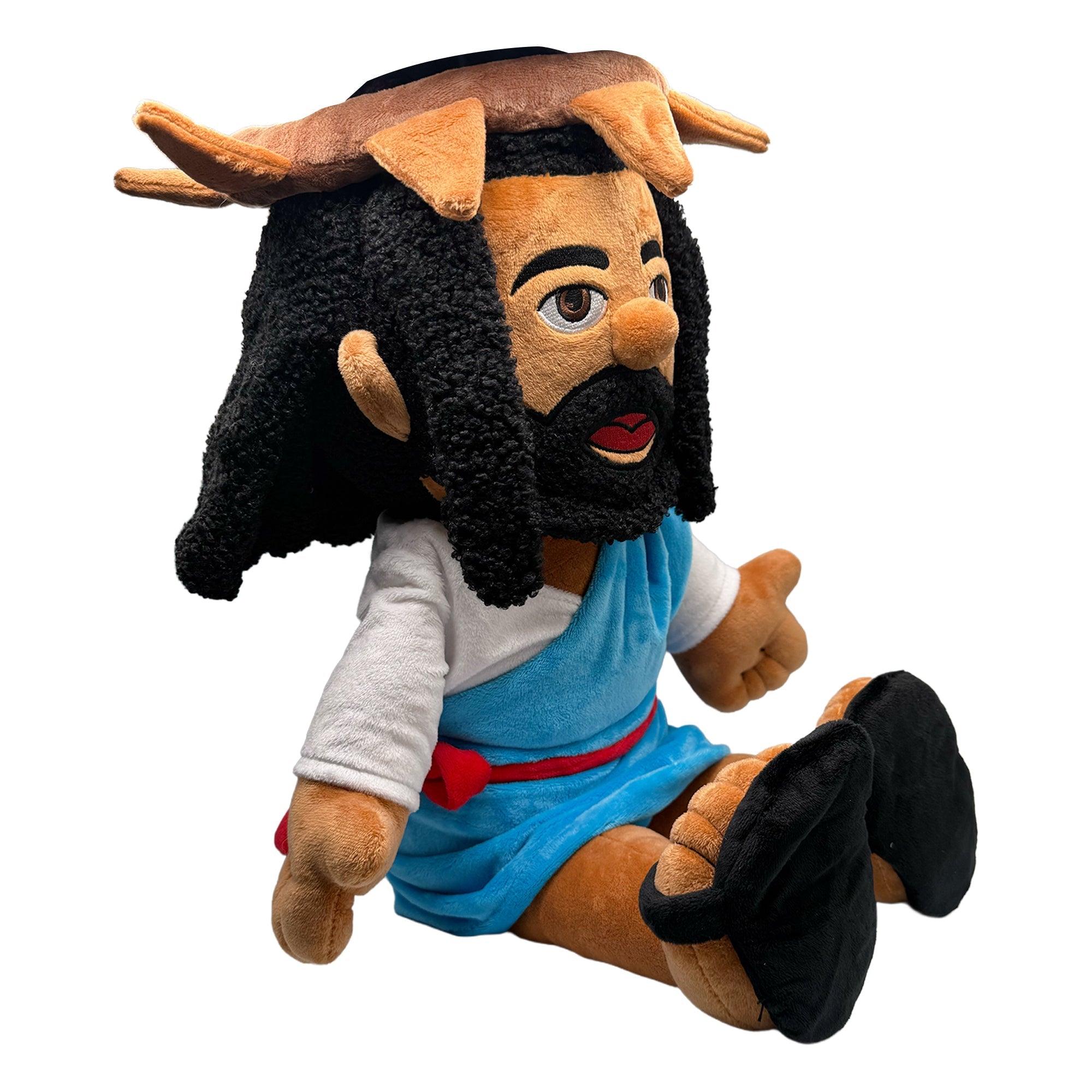 Clothed in white with a blue tunic and red sash, Mighty Messiah steps in to bring love and light wherever he goes. More than a plush, he’s a blessing to your space.