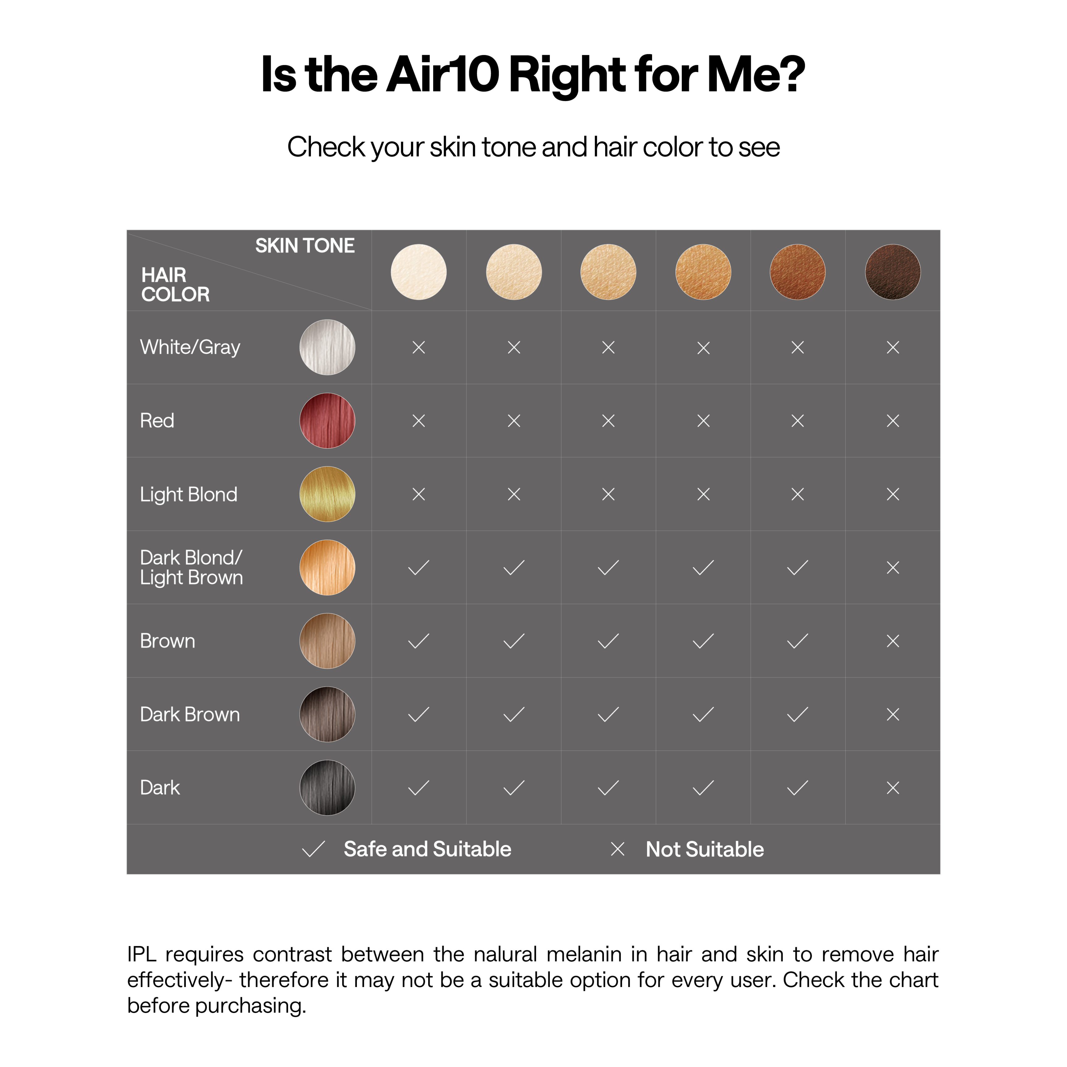 2. Next-Gen Sapphire Ice Cooling Technology - Made with comfort in mind. Maintaining a cool 65°F contact temperature, the Air 10 helps to prevent burns and irritation, ensuring nearly painless hair removal even in sensitive areas.