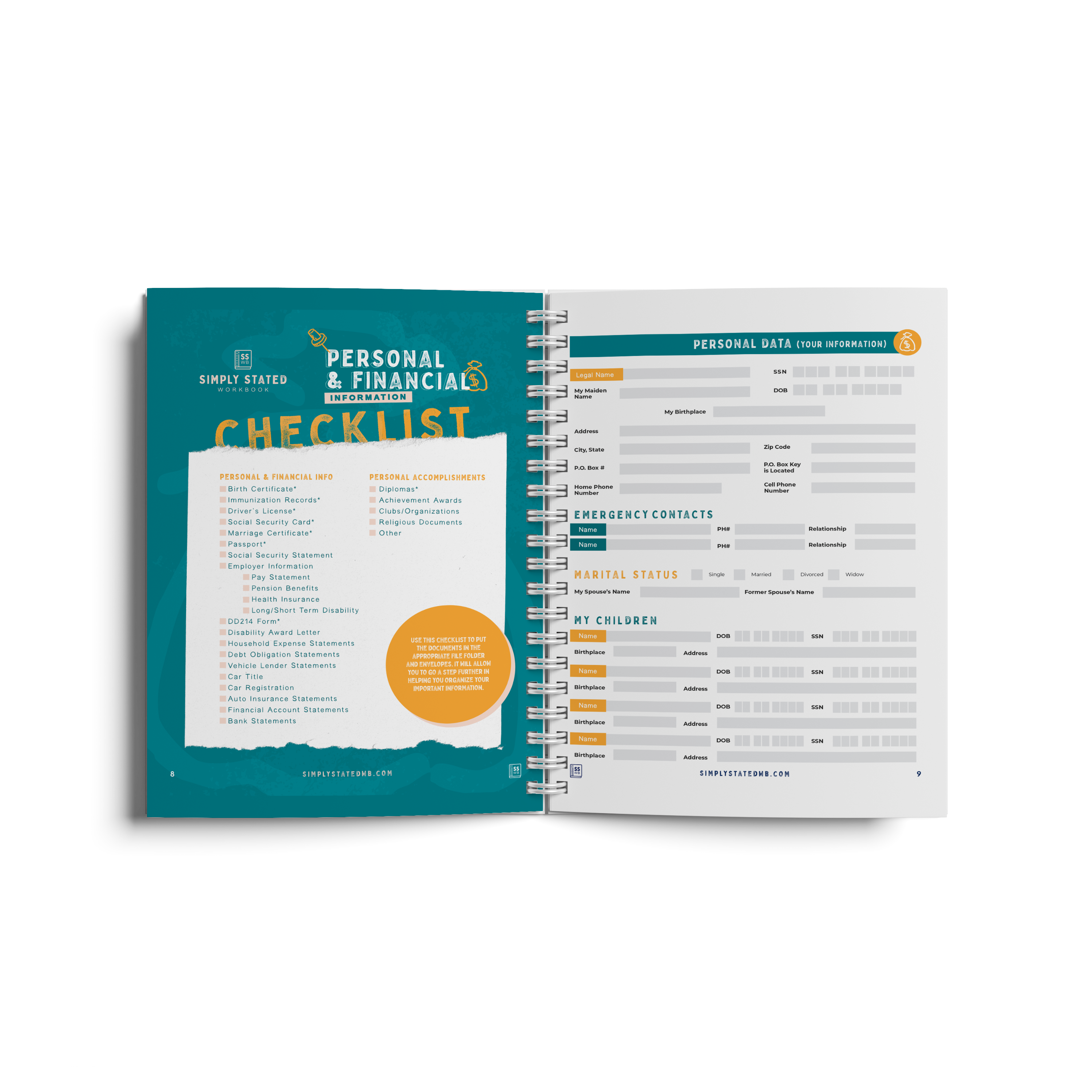 A workbook that organizes vital personal, financial, and medical details into one place, providing peace of mind for life’s unexpected moments.